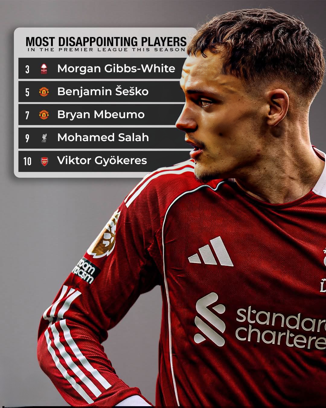 10 Most Disappointing Premier League Players of the 2025-26 Season [Ranked] Florian Wirtz (Liverpool), Viktor Gyokeres (Arsenal) and Morgan Gibbs-White (Nottingham Forest) with a Premier League background Follow
