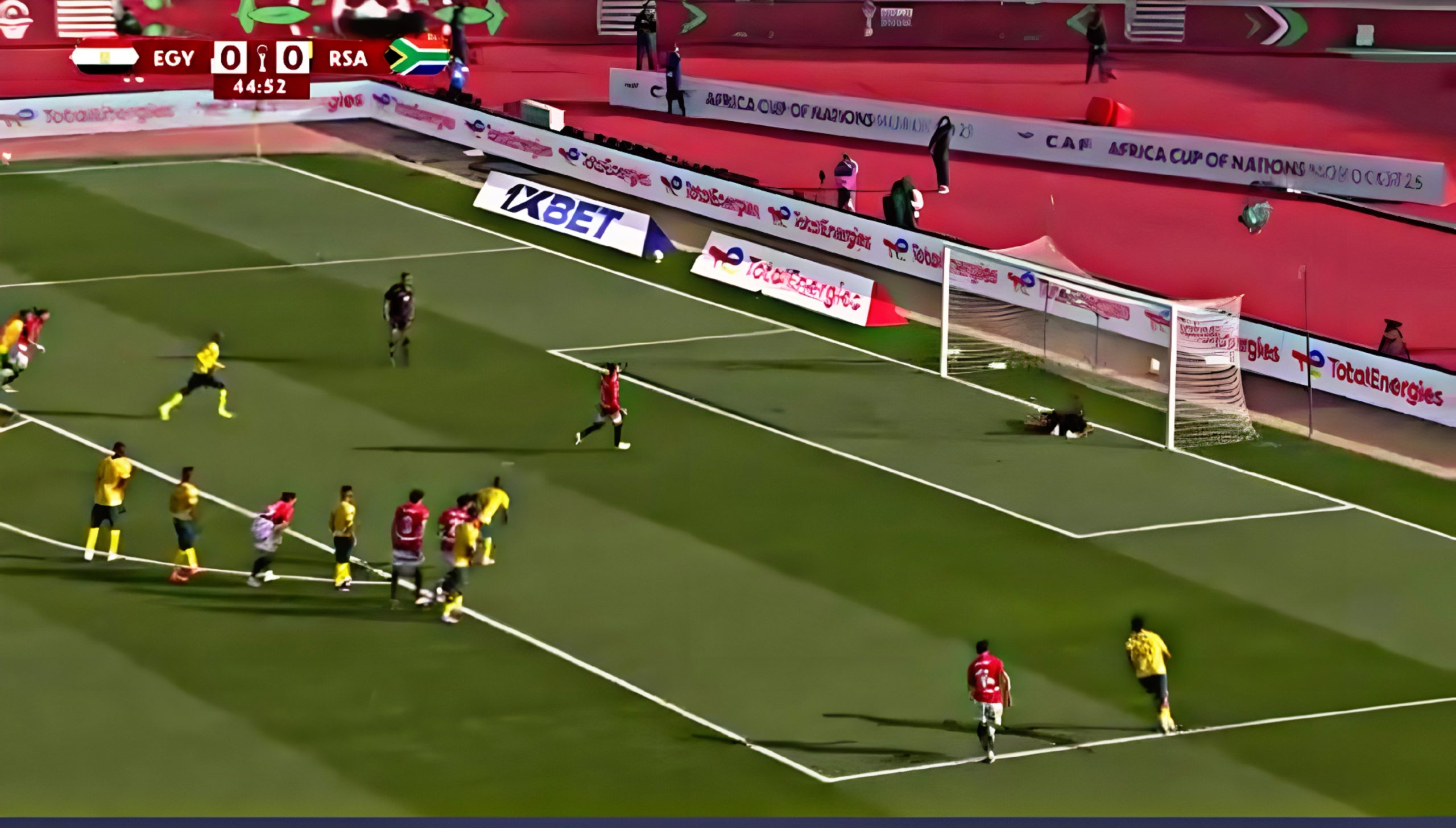 The match remains tightly contested, with both selections defending in well-organized blocks. Egypt apply fantastic pressure high up the field, while South Africa respond with a solid defensive display that prevents clear progression from attacks led by Mohamed Salah and Omar Marmoush.