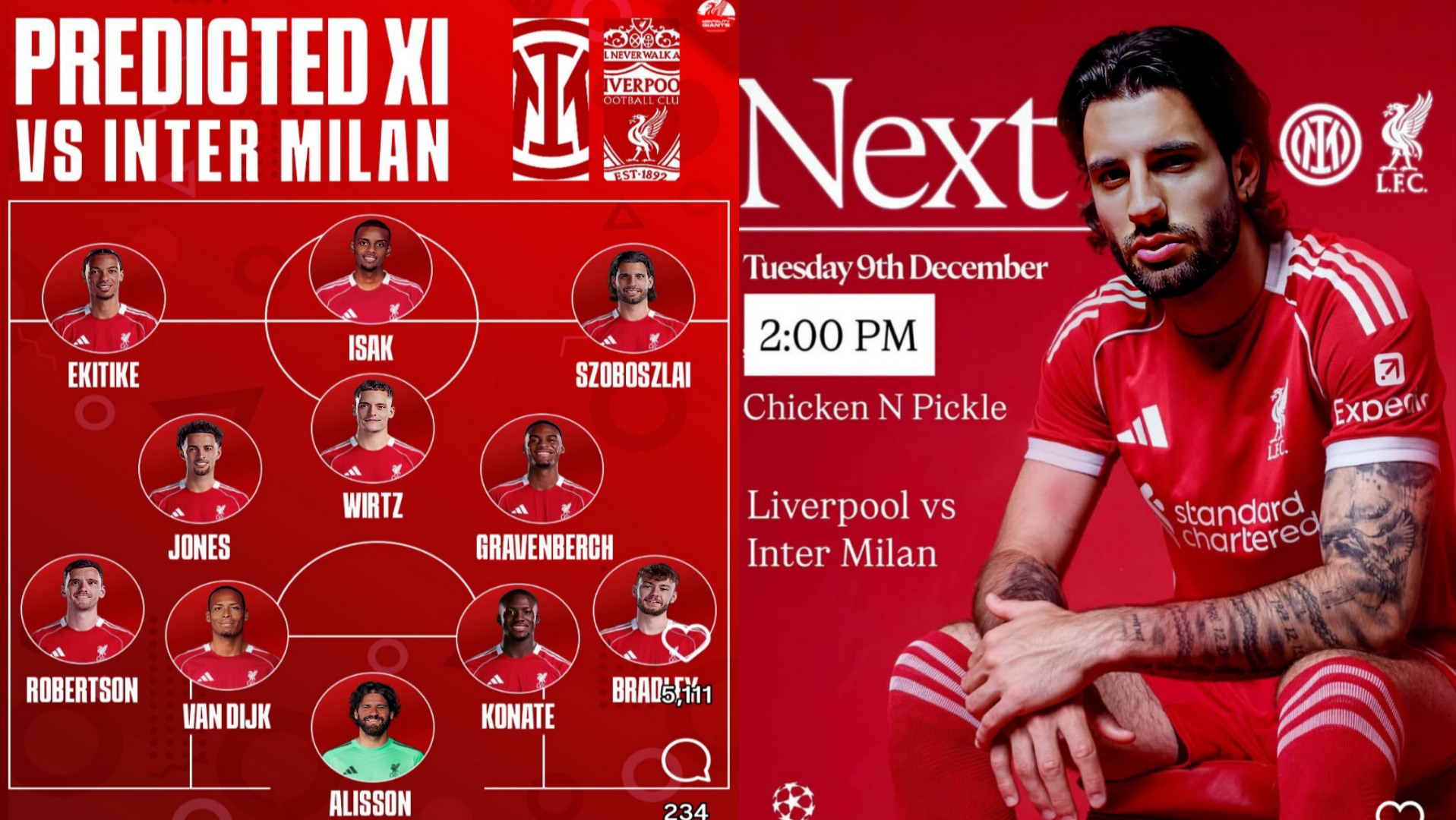 Liverpool’s Predicted XI vs. Inter