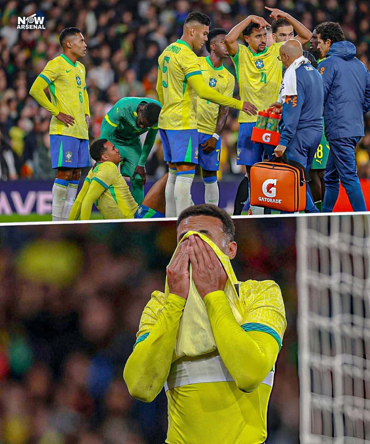 Arsenal were hit by a major injury worry as key defender Gabriel Magalhaes limped out of Brazil’s 2-0 friendly win against Senegal at the Emirates Stadium.