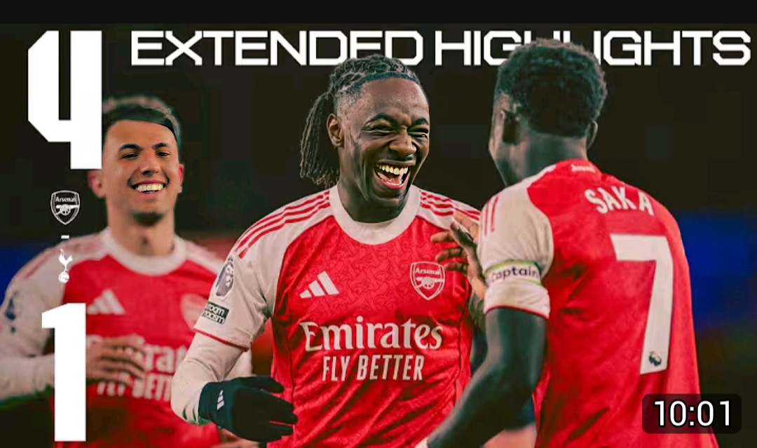 Brilliant Eze hits hat-trick as Arsenal thump Spurs to extend lead in title race