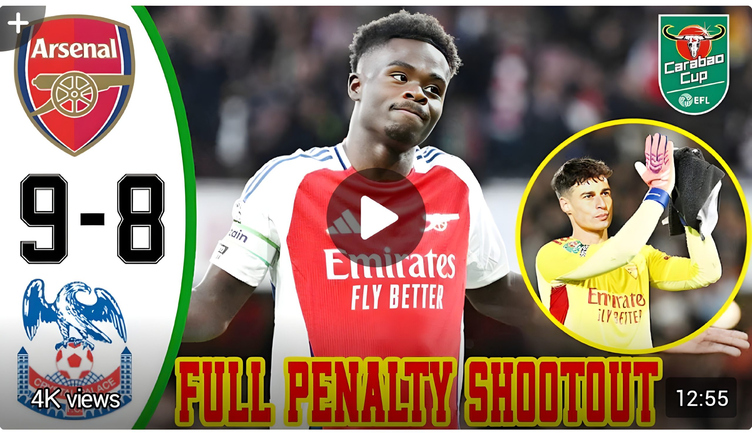 Arsenal vs Crystal Palace 9-8 – All Goals & Highlights Quarter-final EFL Cup 2025