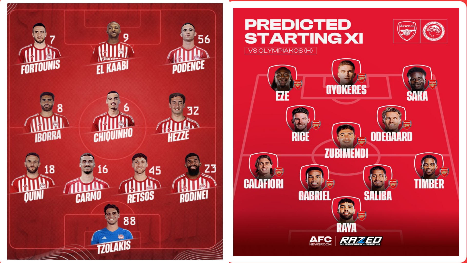 Arsenal XI vs Olympiacos: Confirmed team news, predicted lineup, injury latest for Champions League