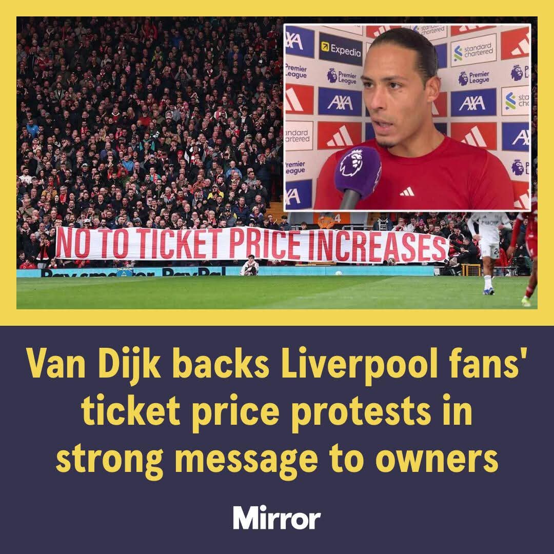 Virgil van Dijk backs Liverpool fans’ ticket price protests in strong message to owners