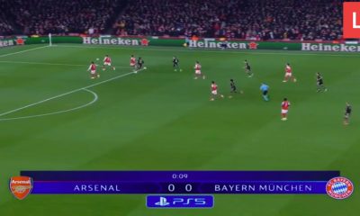 8: CHANCE? A first real attack from Arsenal. Merino lifts the ball over the top of the Bayern defence for Trossard, who looks offside....