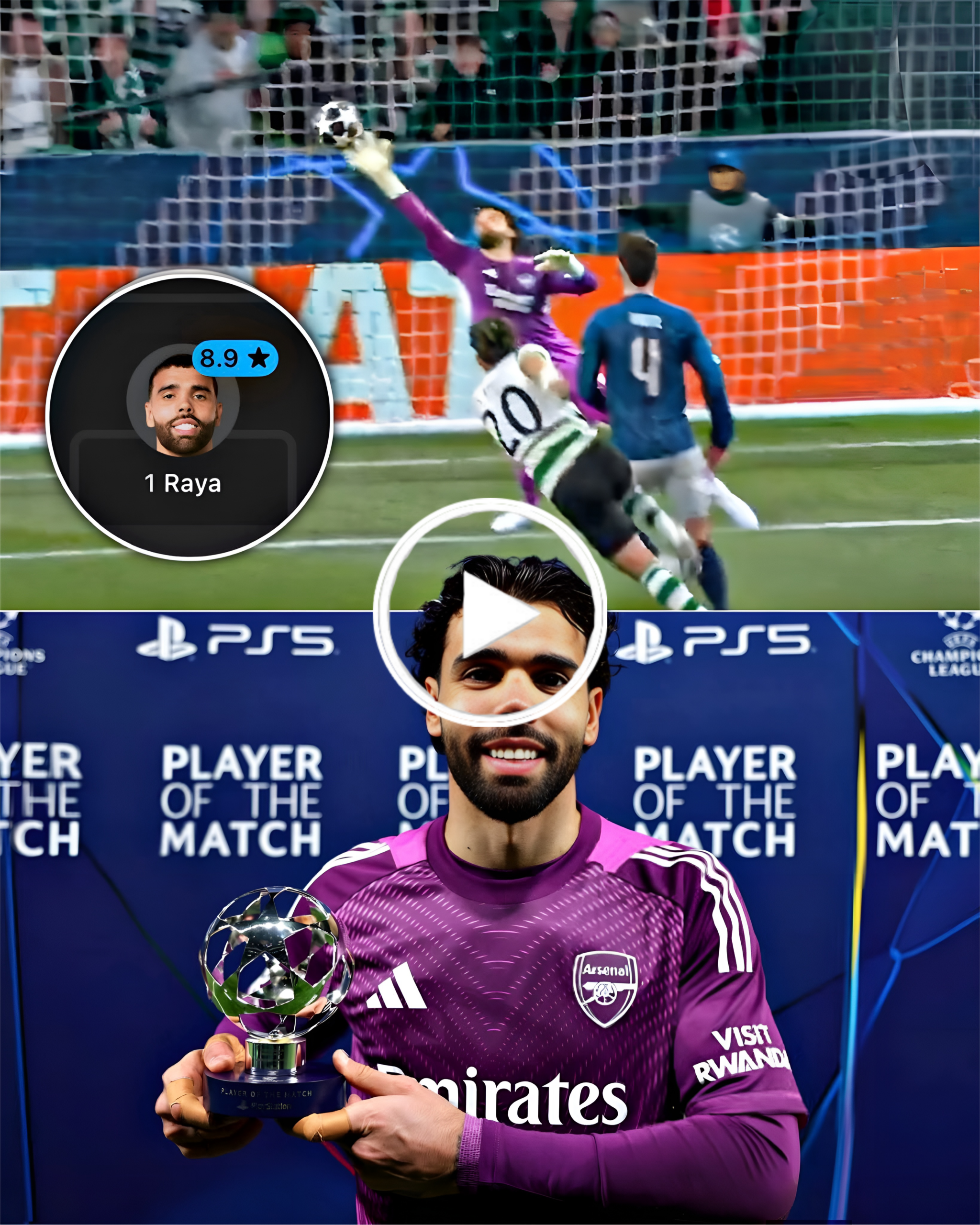 David Raya made five saves, including outstanding stops from Maxi Araujo and Geny Catamo, as Arsenal beat Sporting 1-0 in their Champions League quarter-final first leg; Kai Havetz called him the world’s best and Mikel Arteta talked up his “extraordinary” impact