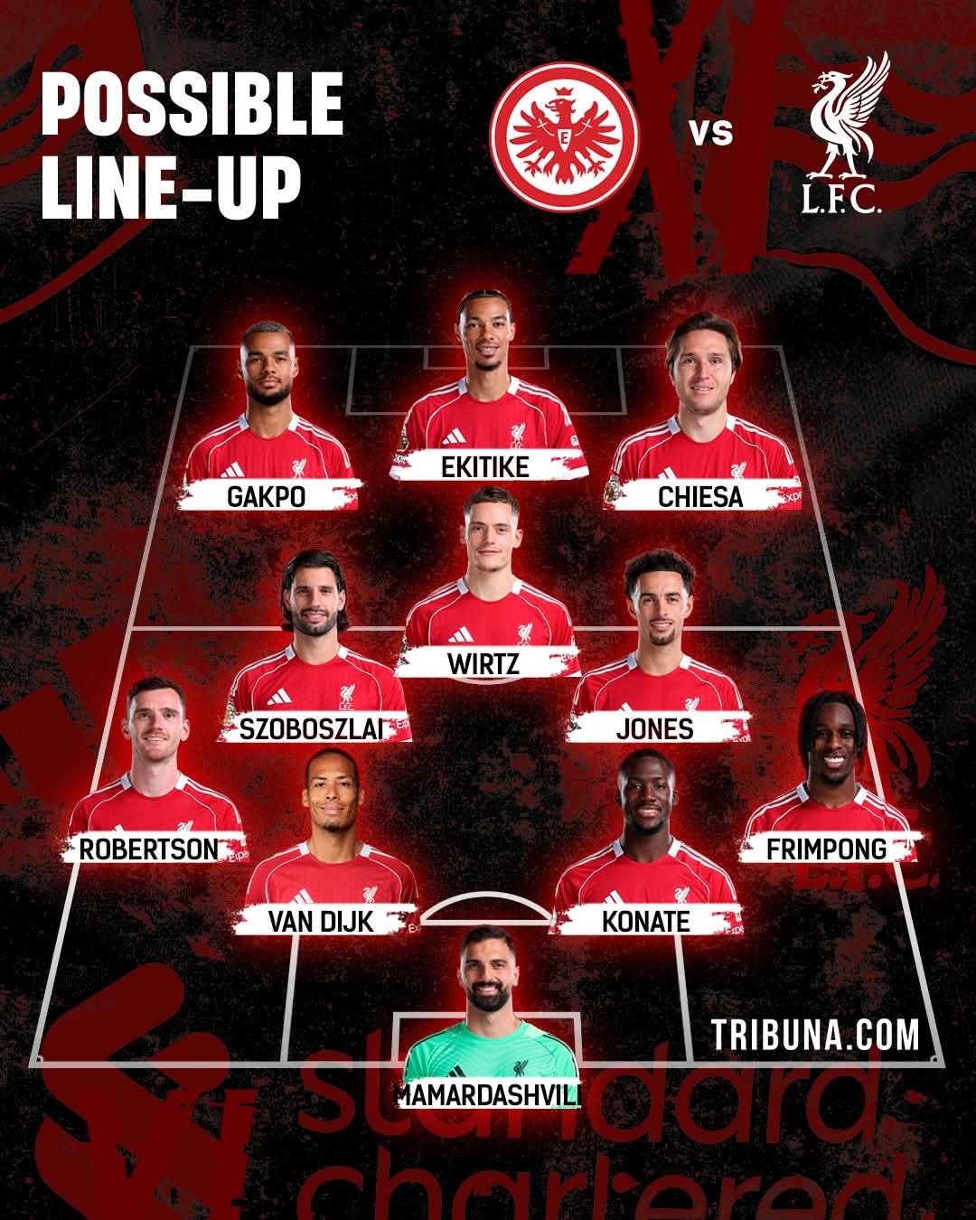 Liverpool’s midfield, led by Szoboszlai and Gravenberch, will be crucial in maintaining possession and breaking down Eintracht’s defence. Expect a closely contested match with both teams looking to assert their attacking prowess.