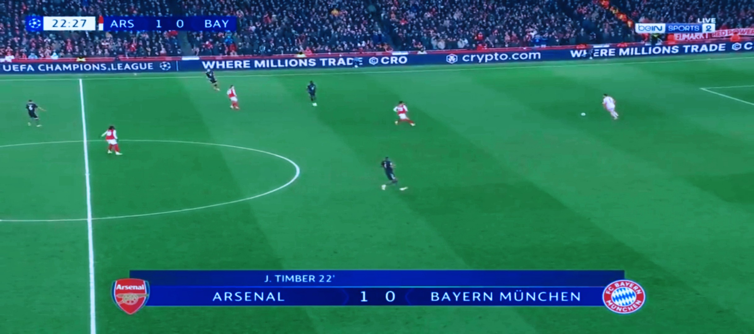 First Half: Arsenal 1-0 Bayern Munich Timber heads home Saka corner for opener View post