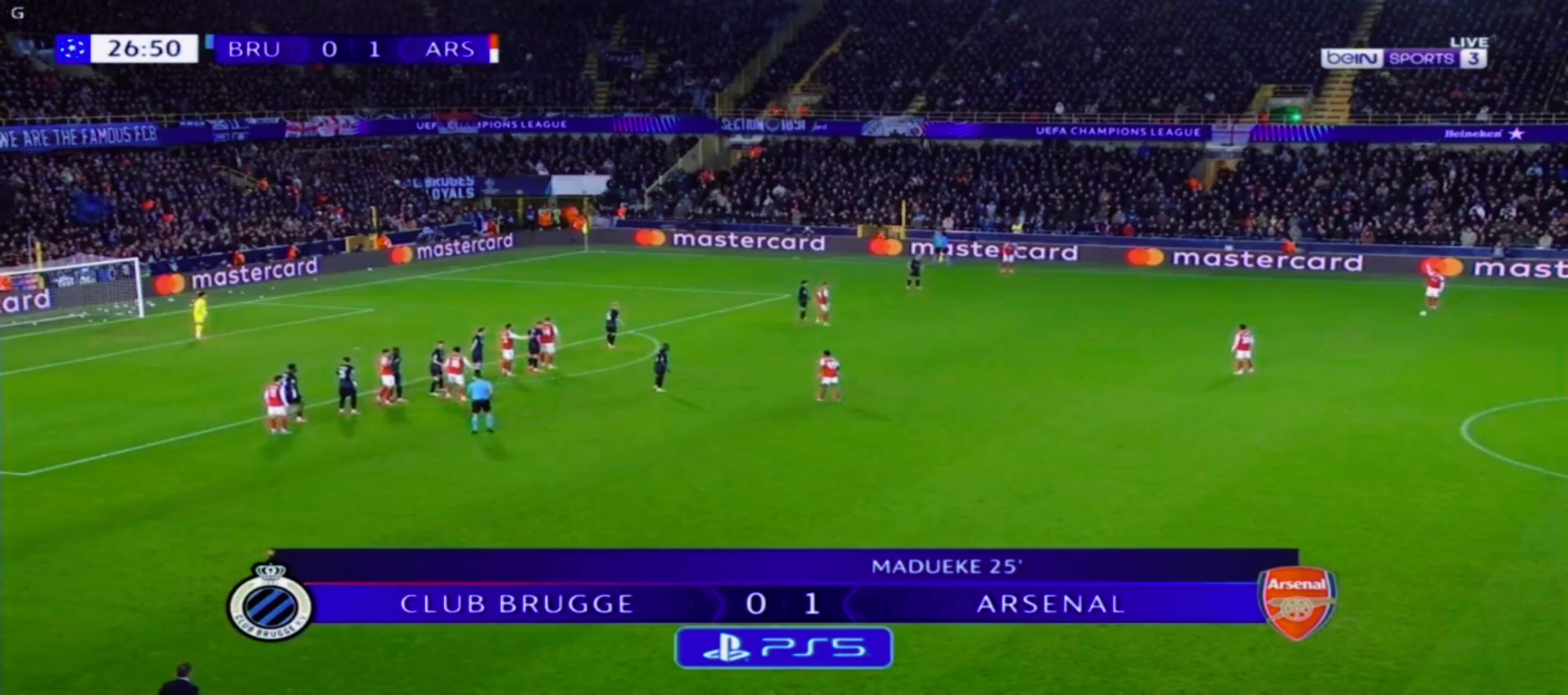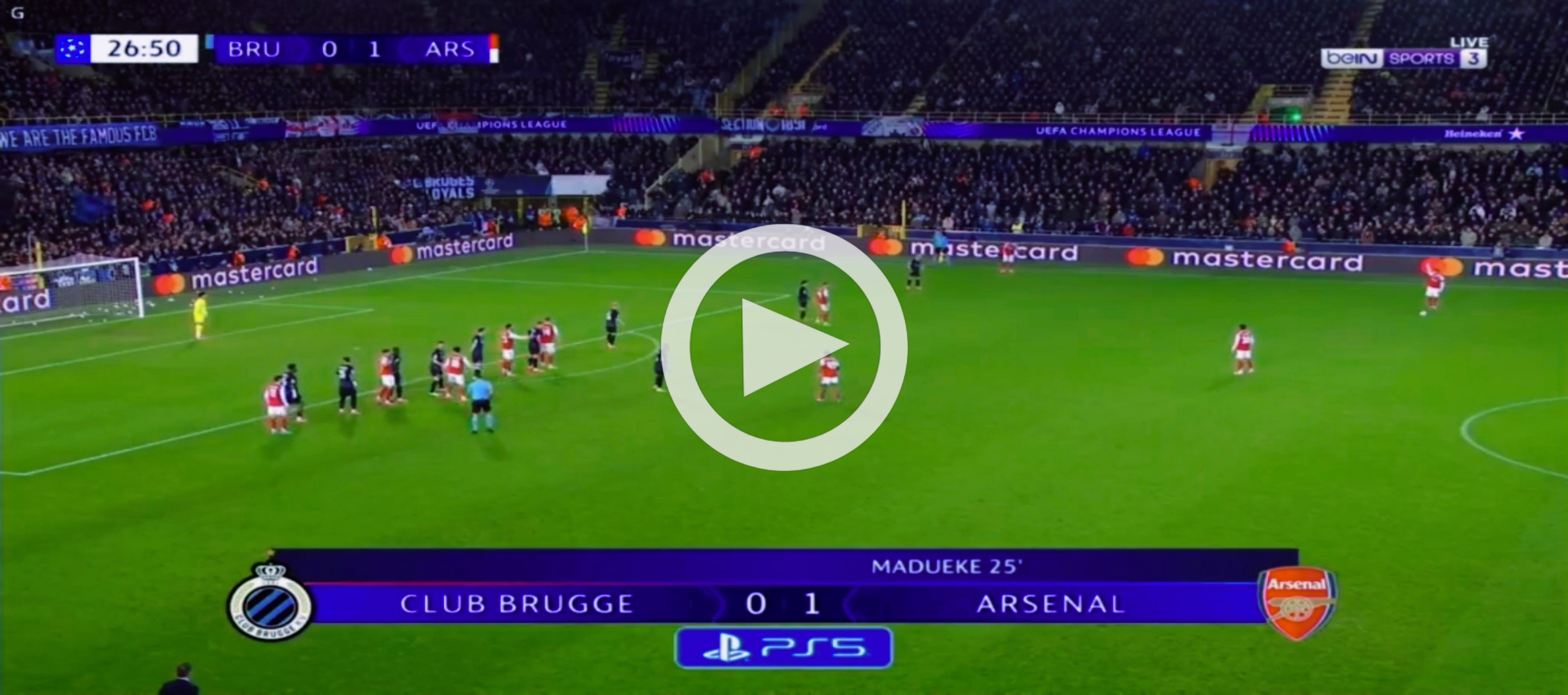 First Half: Club Brugge 0-1 Arsenal Madueke launches missile into Brugge