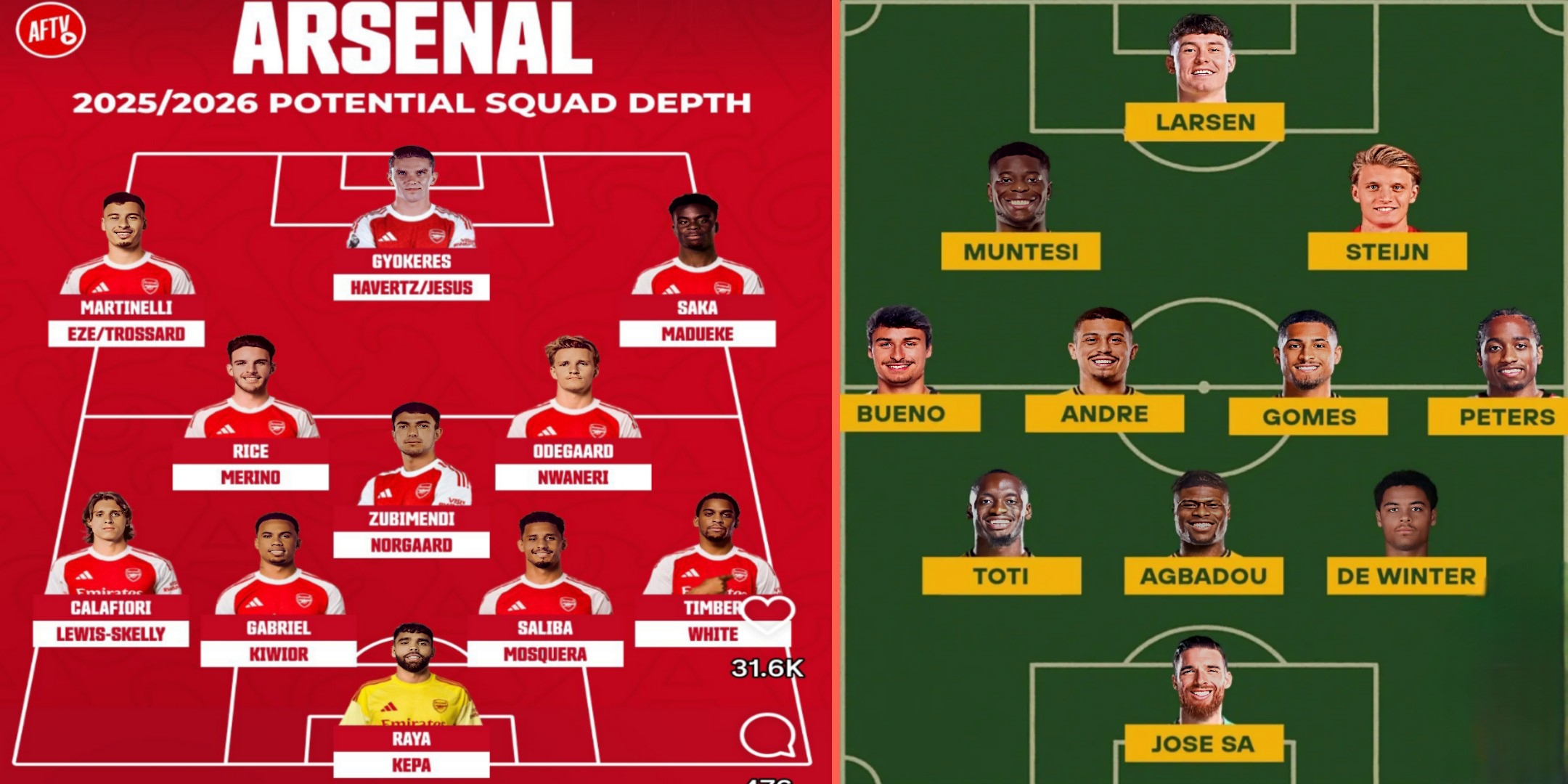 Subs: Kepa, Odegaard, Jesus, Norgaard, Trossard, Madueke, Nwaneri, Merino, Lewis-Skelly.