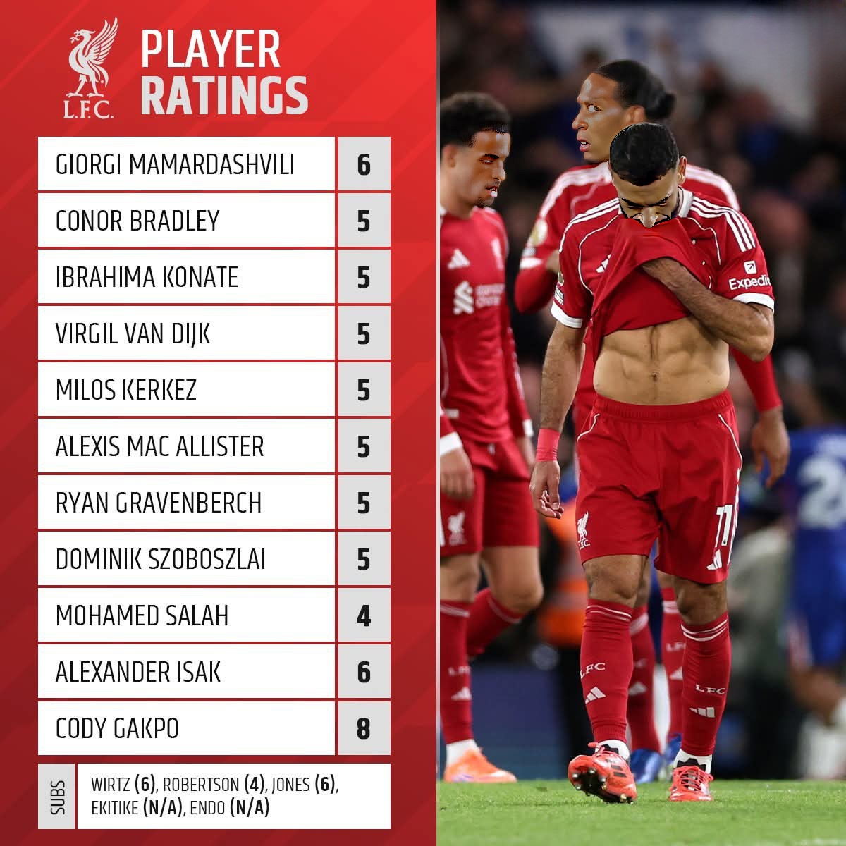 Gakpo – 7.5, Salah – 3: rating Liverpool players in Chelsea loss