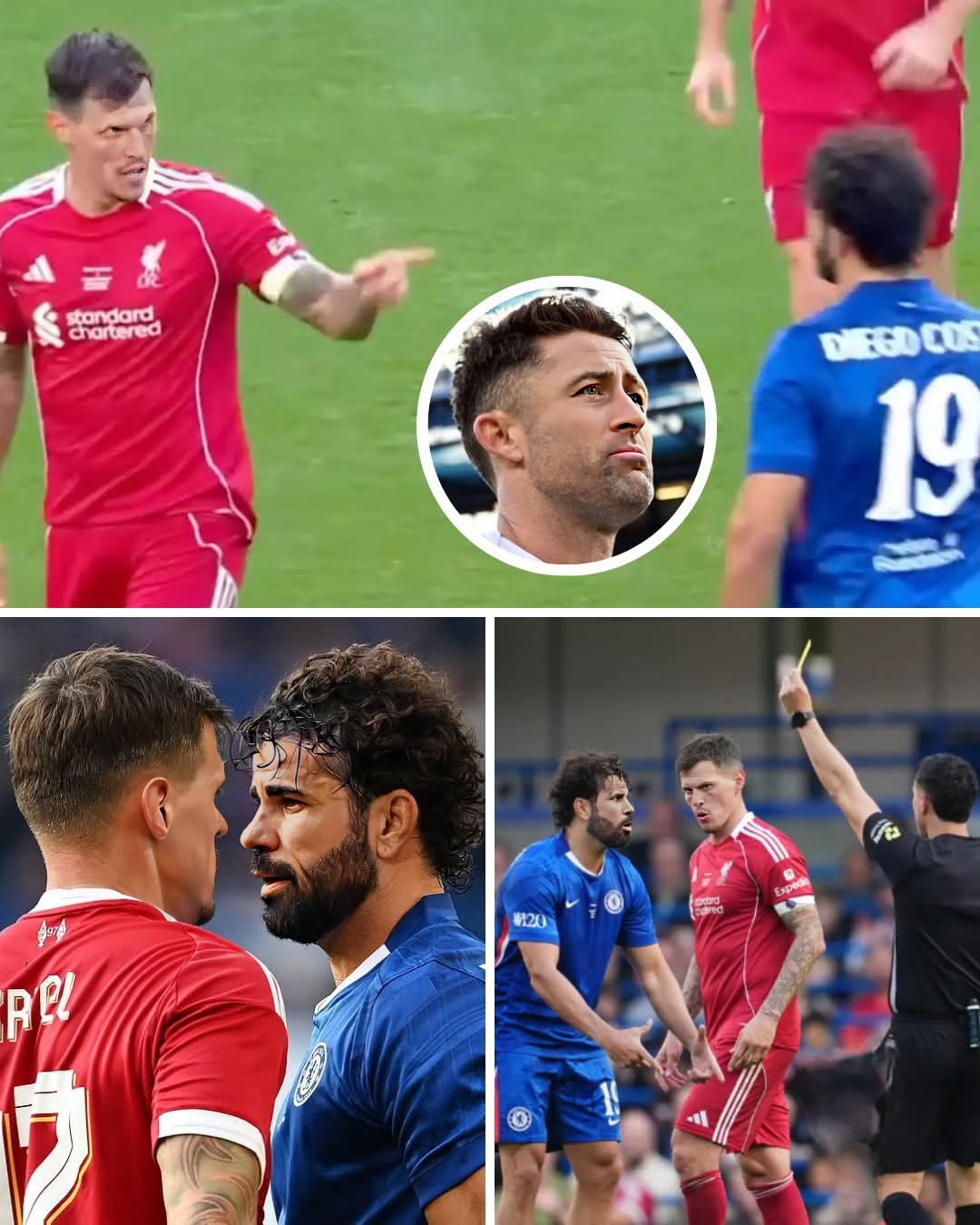Tensions flared between Diego Costa and Martin Skrtel during yesterday’s legends match.