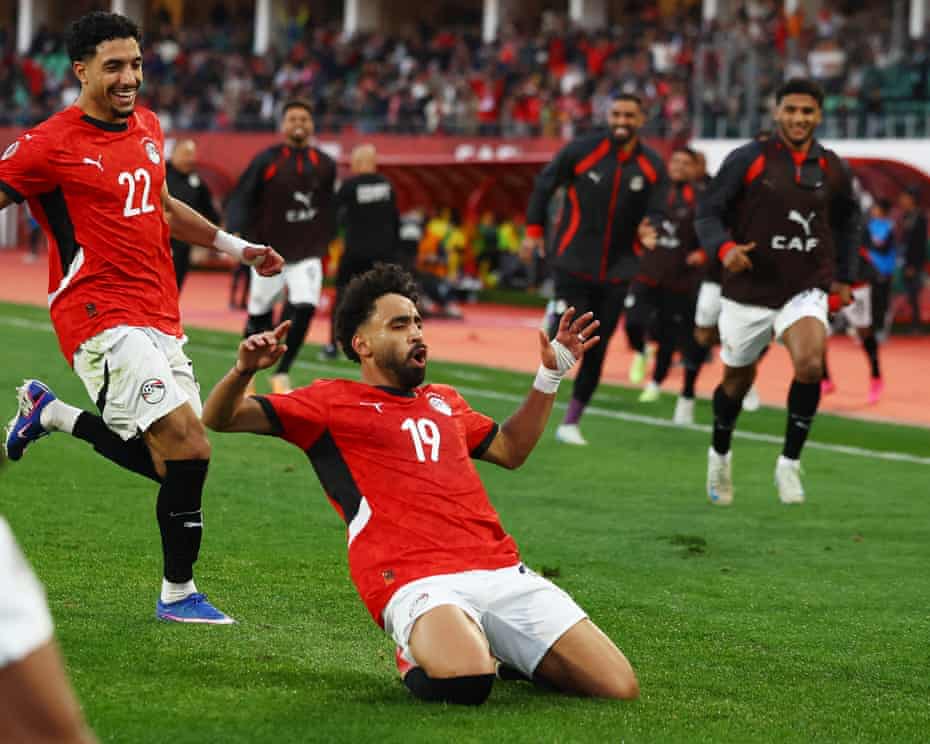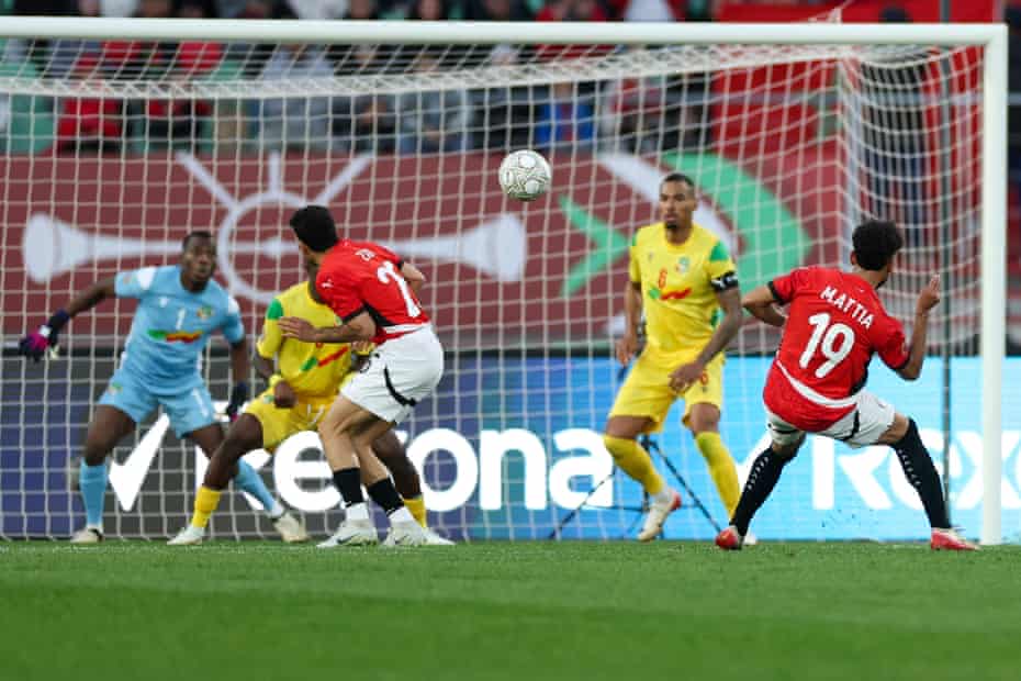 Oh my days. Olaïtan crosses from the right but it takes a wicked deflection, the ball looping into the net … the wrongfooted El Shenawy dives to make a brilliant save but the sliding Dossou is there for the tap in. Benin are bouncing and, man, do they believe; they’ve been brilliant ever since that Egypt goal.