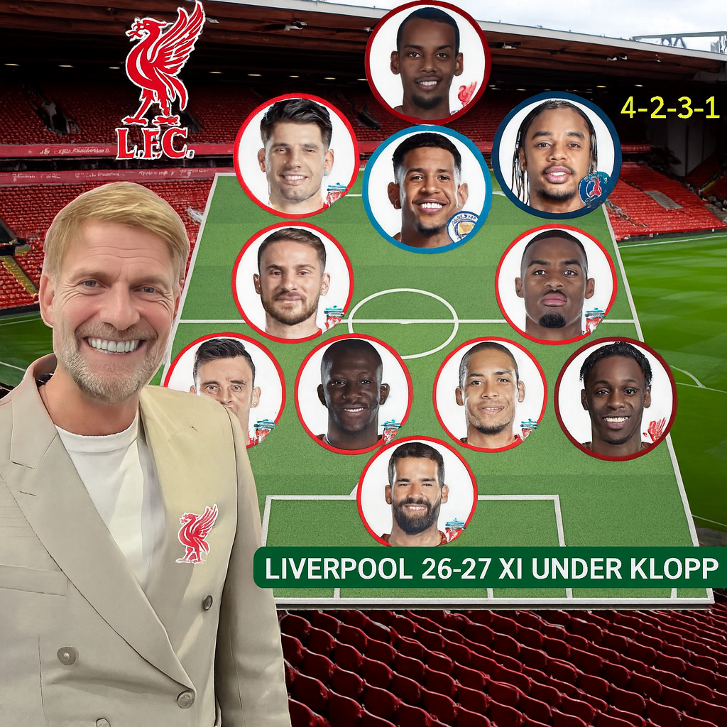 Here’s a strong, realistic speculative lineup and analysis of how Liverpool could line up under Jurgen Klopp in the 2025/2026 season, assuming squad evolution, potential transfers, and development of young players.