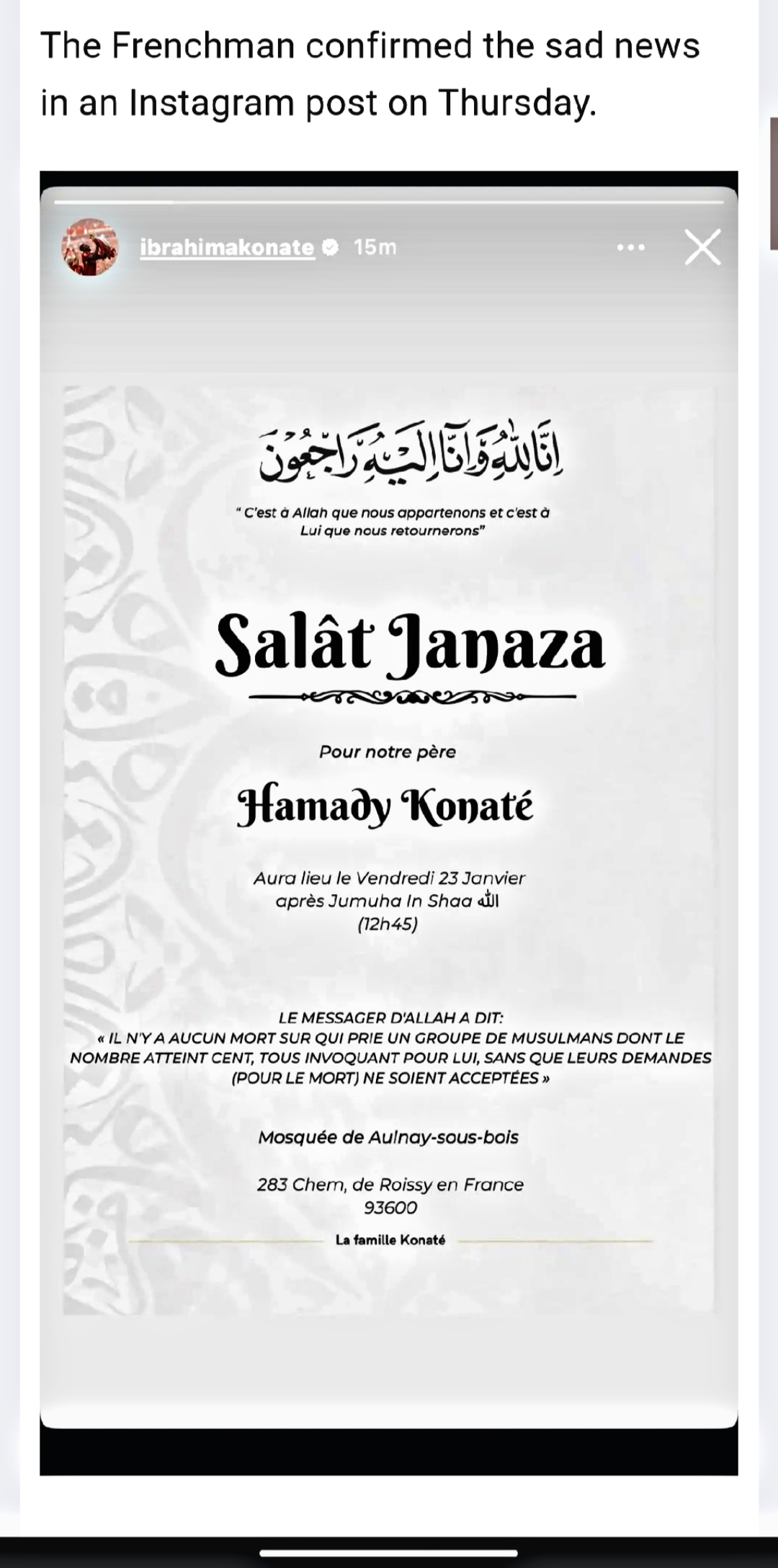 If the reports are true, then Ibrahima KonatƩ has suffered a huge personal loss, and this is a difficult moment for him and his family. Losing a parent is heartbreaking, especially while carrying the pressures of professional football.