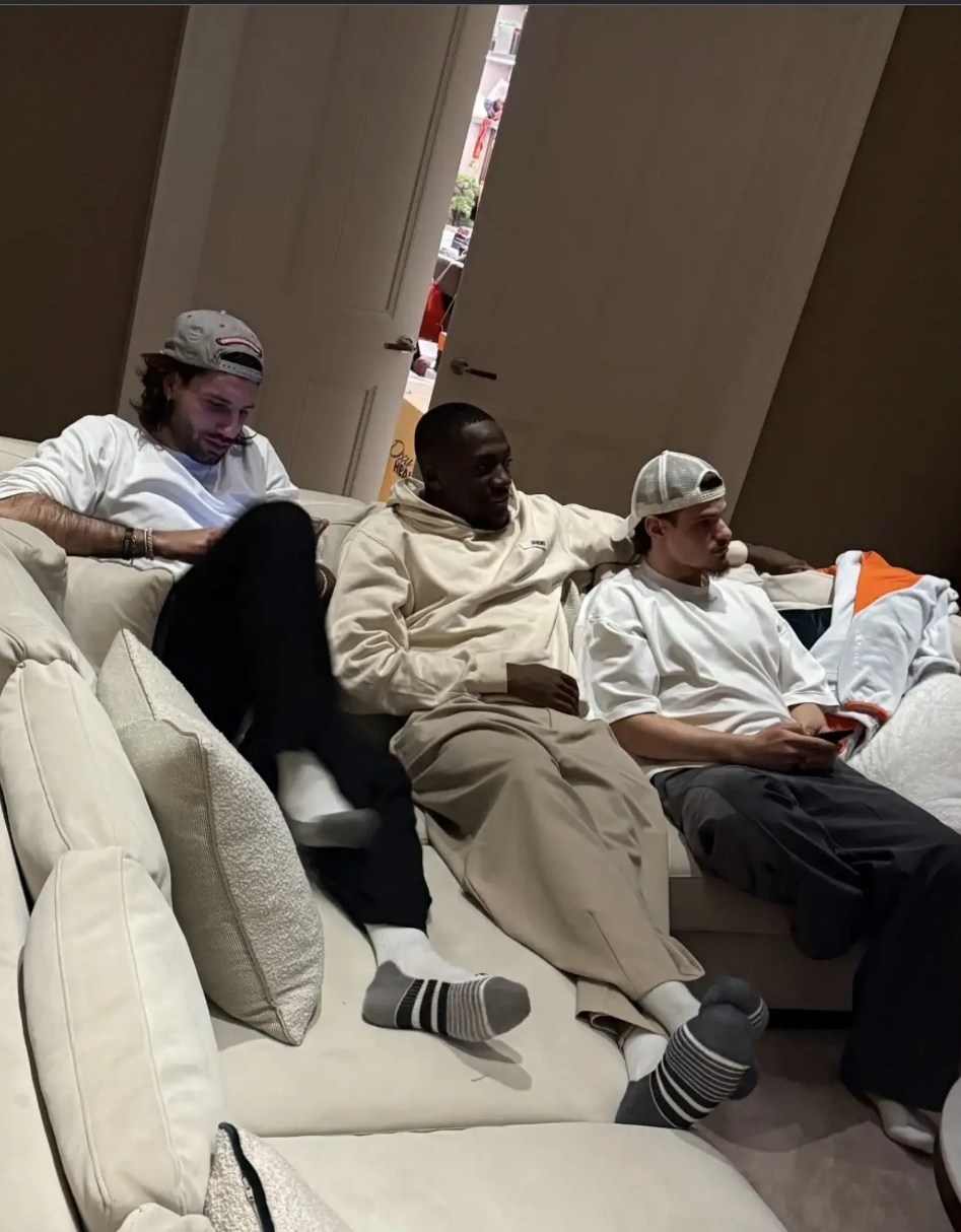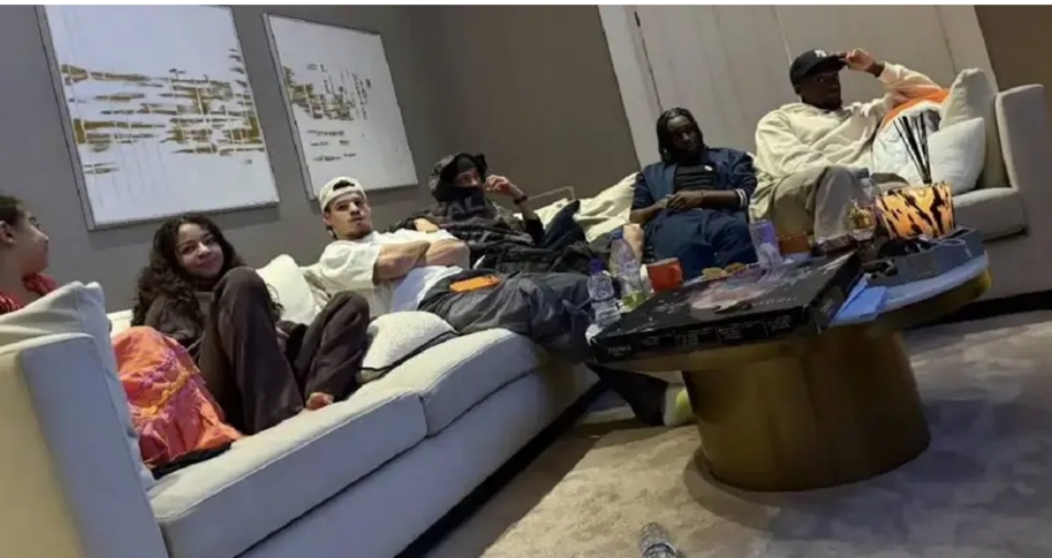 The Egyptian shared Instagram photos of the group chilling on sofas, gaming on phones, snacking, and soaking up family time amid his home portraits.