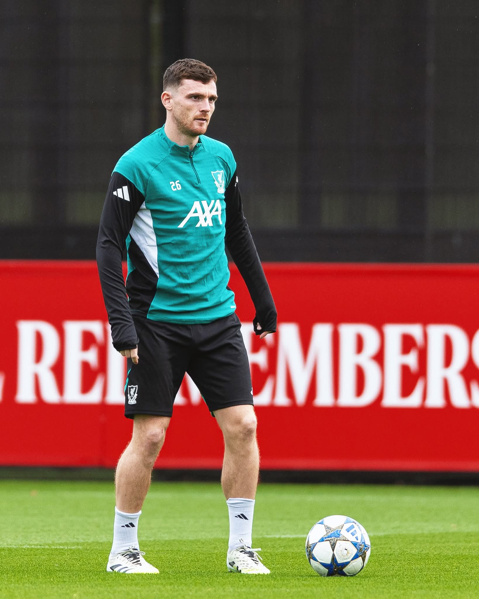 Liverpool’s Hungarian midfielder #08 Dominik Szoboszlai takes part in a training session at the team’s training ground in Kirkby, north of Liverpool in northwest England, on October 21, 2025, on the eve of their UEFA Champions League league phase football match against Eintracht Frankfurt. (Photo by Oli SCARFF / AFP) (Photo by OLI SCARFF/AFP via Getty Images)