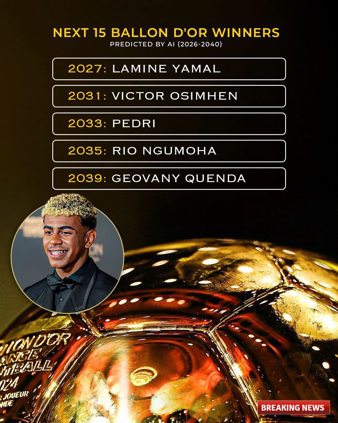Next 15 Ballon d’Or Winners Predicted by AI (2026-2040)