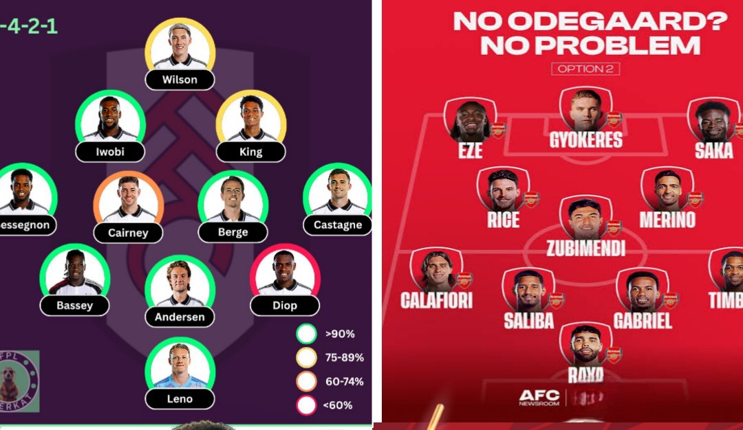 Predicted Arsenal line-up vs Fulham, Zubimendi & Martinelli start