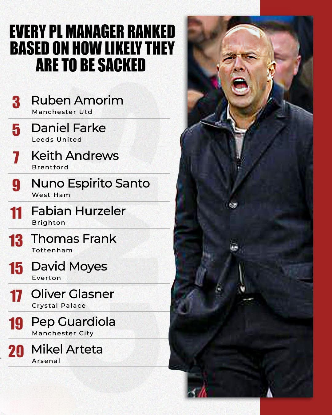 Here, we explore the precarious world of Premier League management, assessing each manager’s likelihood of facing the sack this season. From those navigating the treacherous waters of relegation battles to those leading title-chasing sides, GIVEMESPORT examines the factors that could impact managerial job security – from team performance trends and the patience of the boardroom to the constant glare of media attention.