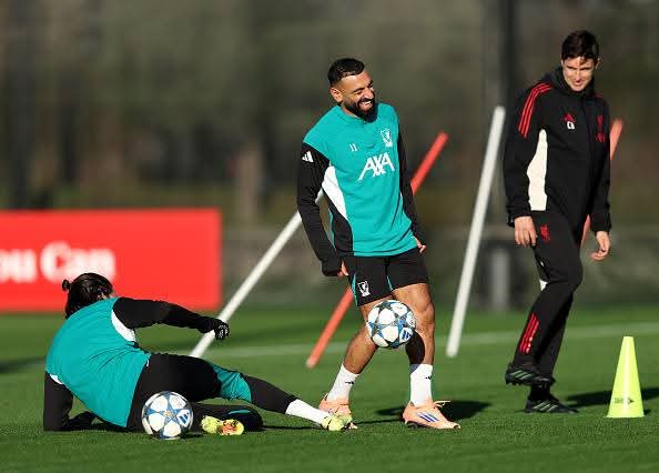 Liverpool trained ahead of facing PSV in the Champions League with Arne Slot all smiles, four players missing, and Joe Gomez providing a boost ahead of the game
