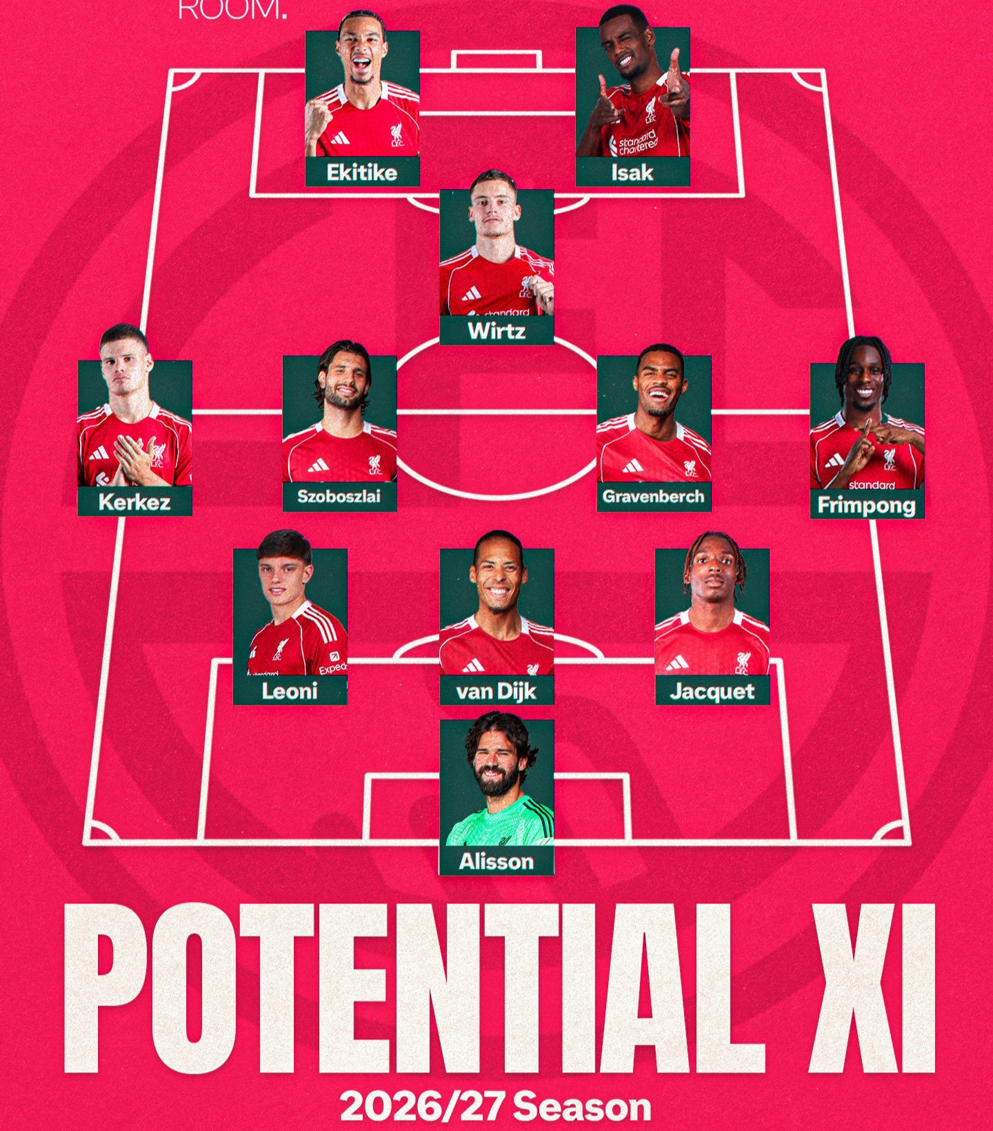 If Champions League qualification is missed, Liverpool may need to rely on their current squad, potentially adopting a narrower system. In such a setup, players like Hugo Ekitike and Alexander Isak could form a strike partnership, supported by Florian Wirtz in a free role. The midfield trio of Dominik Szoboszlai, Ryan Gravenberch, and Alexis Mac Allister would provide balance, while defensive changes could see Jeremy Jacquet step in depending on Ibrahima Konaté’s future.
