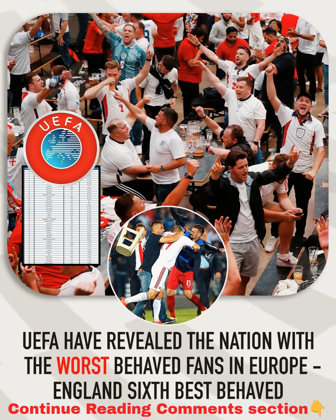 UEFA Reveal Nation With Worst Behaved Fans in Europe – England 6th Best Behaved