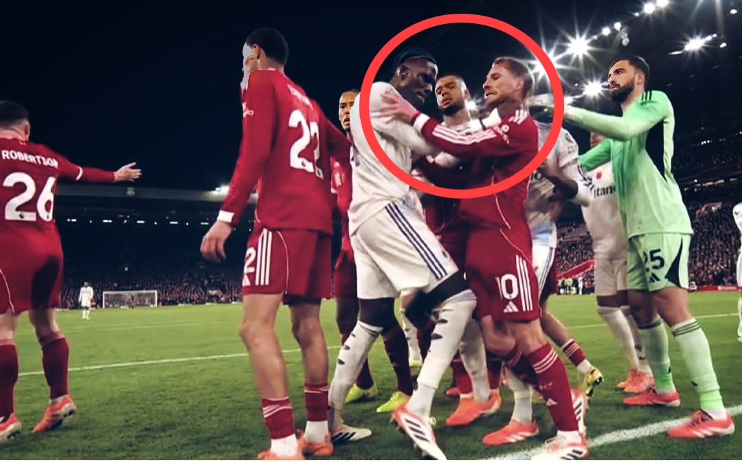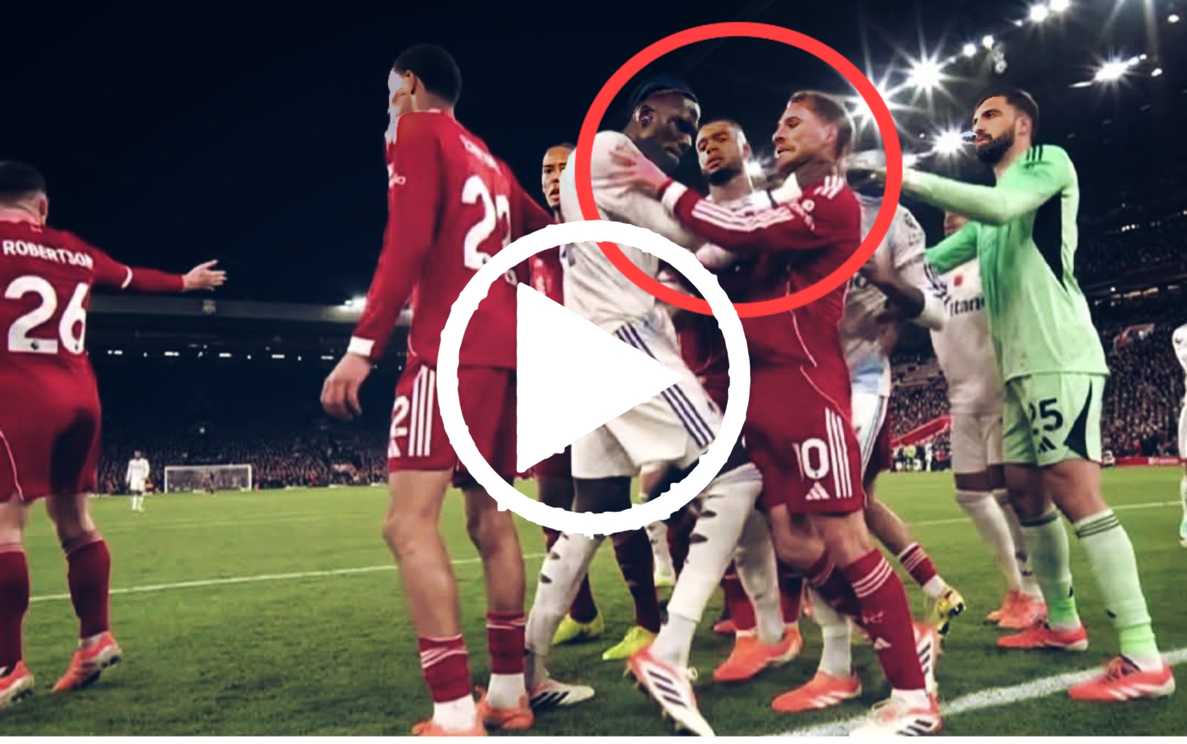 As the visitors prepared to take a corner kick in the 73rd minute, there was all sorts of pushing and shoving going on inside the Liverpool six-yard box, with Stuart Attwell forced to intervene and restore order.