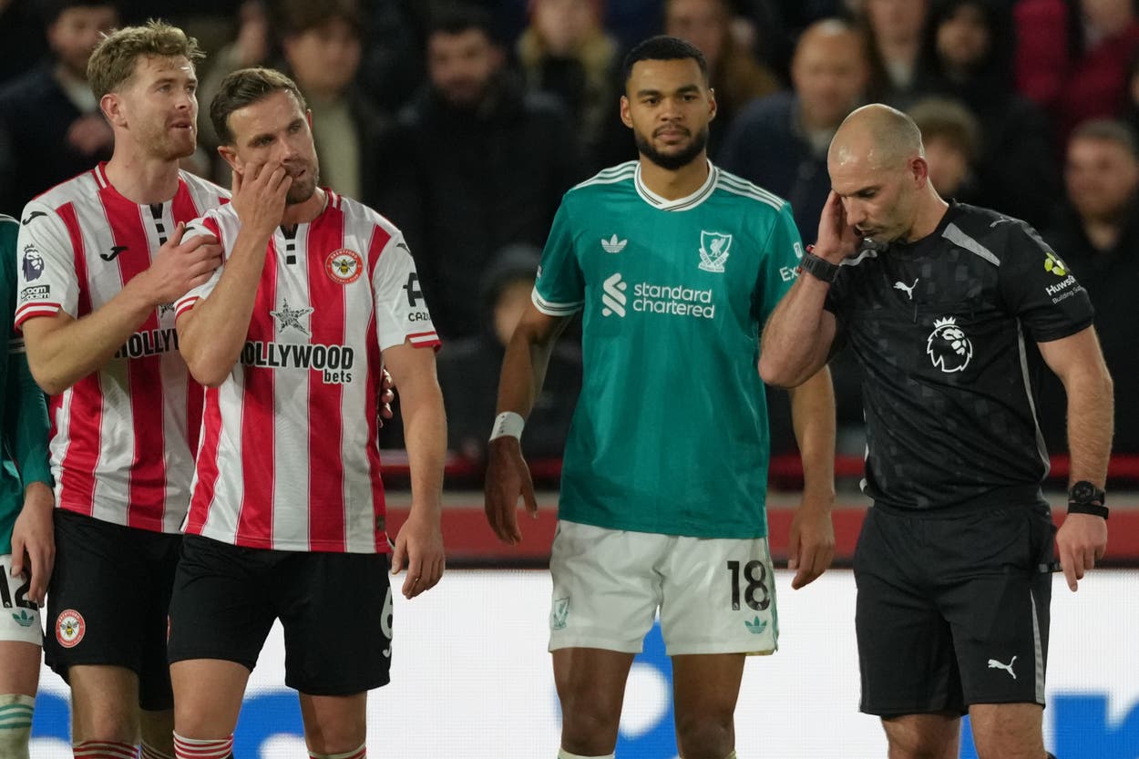 Robinson then awarded Brentford a penalty after Virgil van Dijk was judged to have made contact Dango Ouattara on the line, with VAR Chris Kavanagh instructing an overturn after Robinson gave a free-kick.